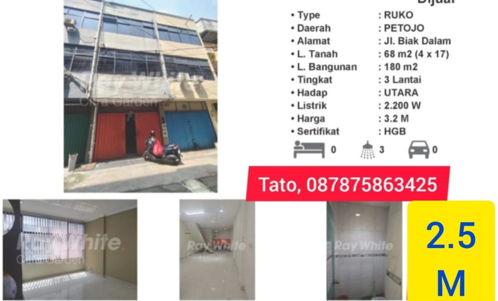 Jual Cepat Butuh Uang Ruko Jalan Biak 4lt Roxy Cideng Tato pro