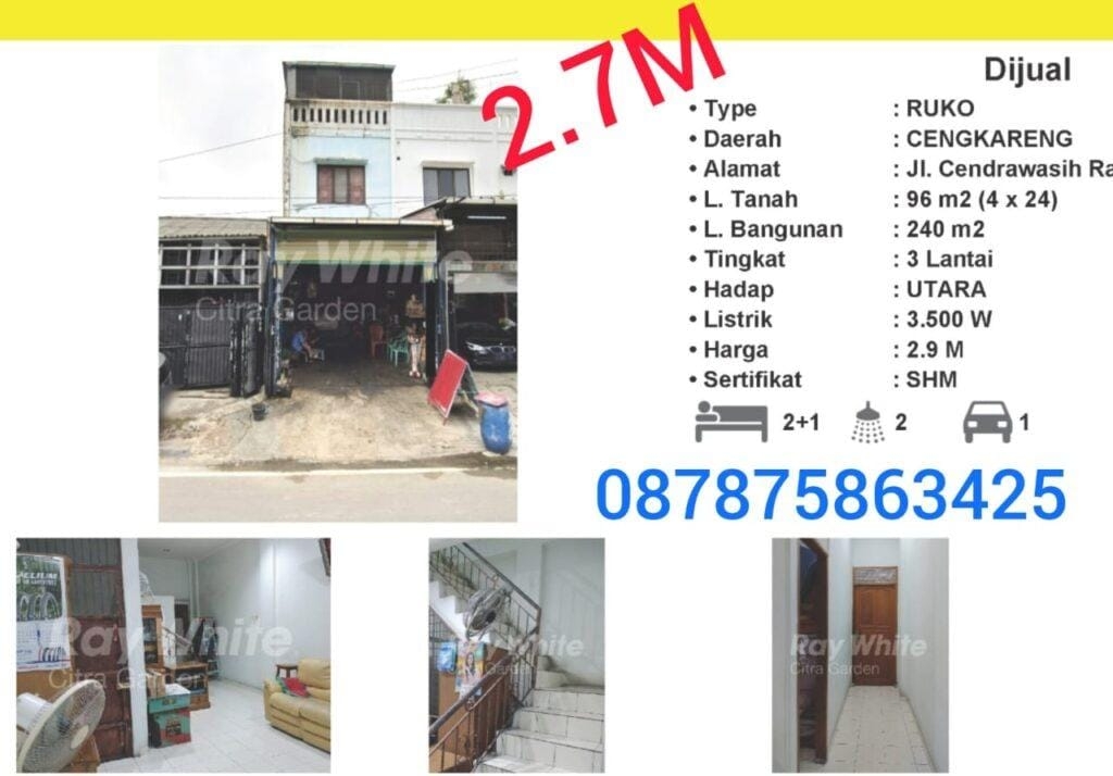 Dijual Cepat Ruko jalan Cendrawasih Cengkareng Jakarta barat Tato 087875863425